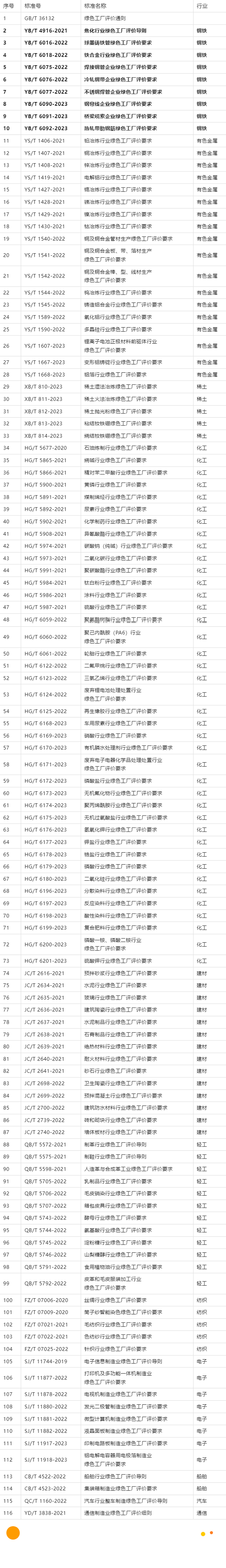 按照《綠色工廠梯度培育及管理暫行辦法》的有關要求,現將用于2024年度國家層面綠色工廠創建的標準清單予以發布。請納入本清單的行業參照相應行業標準開展評價工作,不在清單范圍的行業參照國家標準《綠色工廠評價通則》開展評價工作。