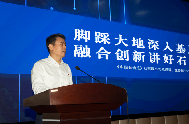 《中國石油報》社有限公司總經理、黨委副書記耿玉鋒交流發言。