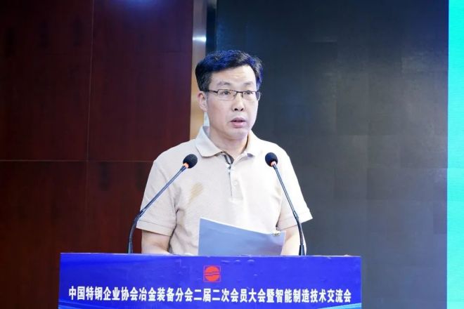 冶金裝備分會會長、興澄特鋼副總經(jīng)理王永建作了二屆二次會員大會工作報告,并以《數(shù)領(lǐng)特鋼 智啟未來》為題作了世界首家特鋼燈塔工廠創(chuàng)建分享。