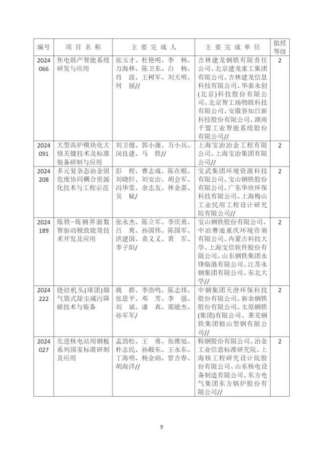 110項!2024年冶金科學技術獎推薦獲獎項目公告