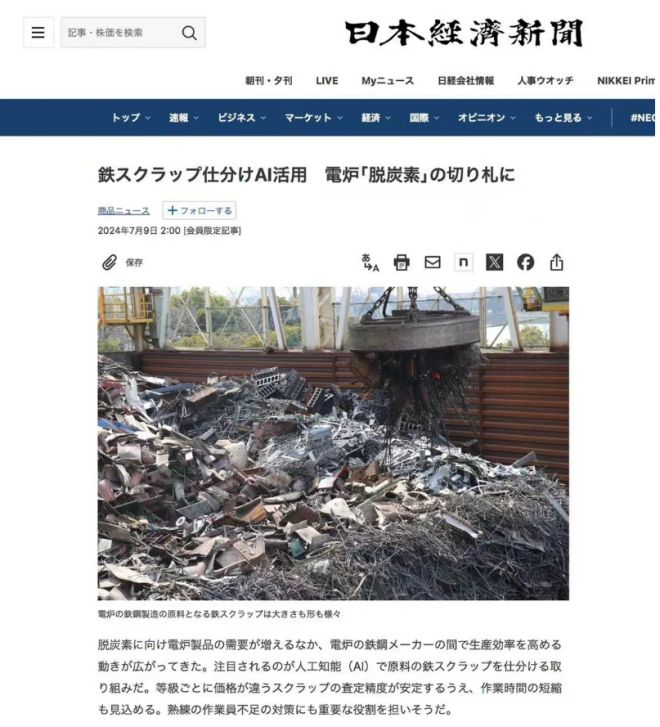《日本經濟新聞》還提到,日本規模最大的電爐公司——東京制鐵株式會社,其煉鋼工廠岡山工廠,也已引進鐳目廢鋼智能判級系統,以期在廢鋼處理方面實現更高的效率和準確性。