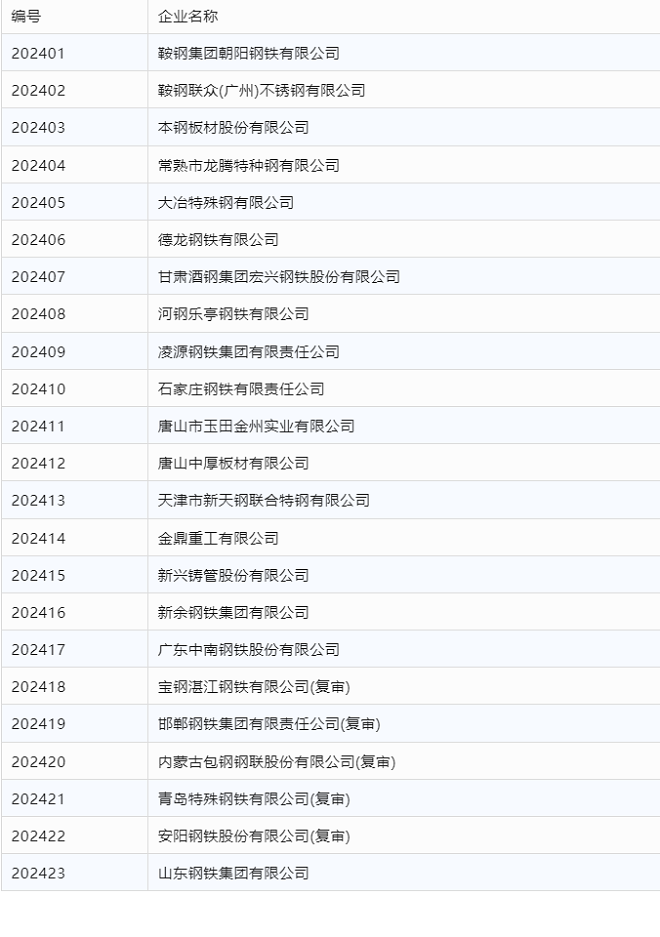 1.2024年度中國鋼鐵工業協會清潔生產環境友好企業申報企業名錄