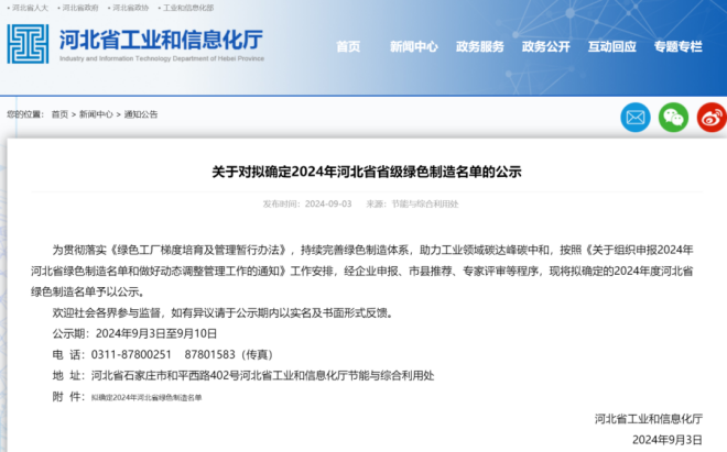 9月3日,河北省工業(yè)和信息化廳發(fā)布了《關(guān)于對擬確定2024年河北省省級綠色制造名單的公示》(點(diǎn)擊公示可觀看全文)。