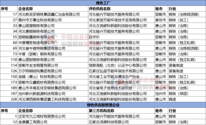 該名單公布了綠色工廠238家,綠色園區(qū)9家,綠色供應(yīng)鏈管理企業(yè)13家。其中,共有18家鋼鐵相關(guān)企業(yè)上榜,金鼎、九江上榜河北省綠色供應(yīng)鏈管理企業(yè)公示名單。