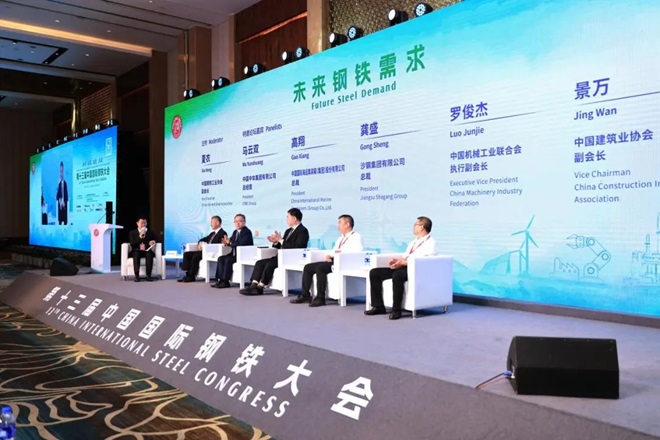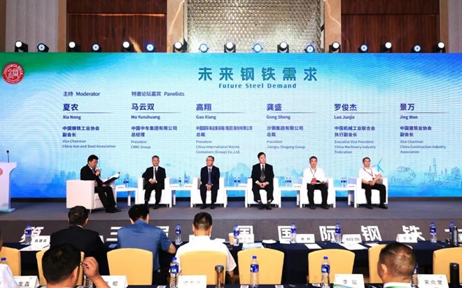 9月2日,在第十三屆中國國際鋼鐵大會期間舉辦的“未來鋼鐵需求”論壇上,中國中車集團有限公司總經(jīng)理馬云雙,中國國際海運集裝箱(集團)股份有限公司總裁高翔,沙鋼集團有限公司總裁龔盛,中國機械工業(yè)聯(lián)合會執(zhí)行副會長羅俊杰,中國建筑業(yè)協(xié)會副會長景萬坐而論道、共話“鋼需”。鋼協(xié)副會長夏農(nóng)主持論壇。