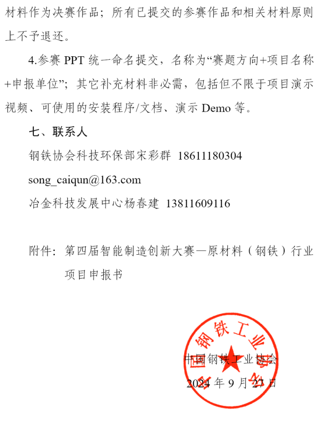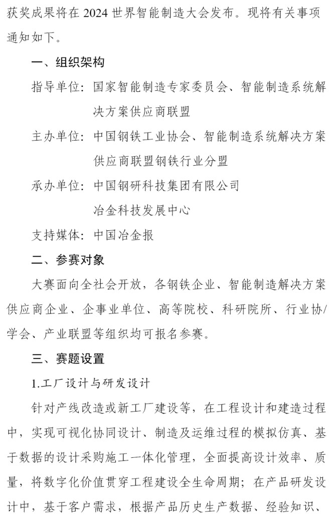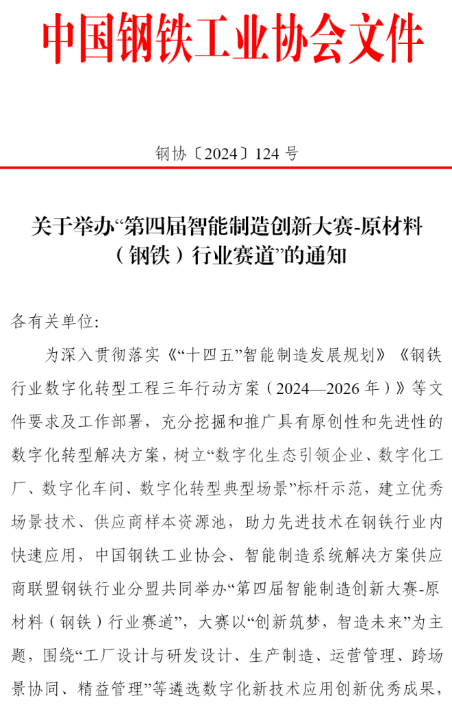 關于舉辦“第四屆智能制造創新大賽-原材料(鋼鐵)行業賽道”的通知