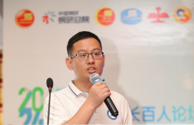 圖為鐳目公司機器人事業部部長付軍在論壇上發言。