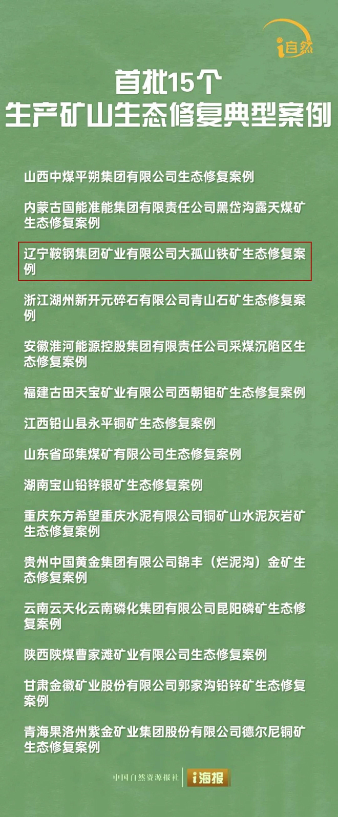 近日,首批15個生產(chǎn)礦山生態(tài)修復(fù)典型案例在天津召開的2024中國國際礦業(yè)大會“礦山生態(tài)修復(fù)論壇”上發(fā)布。其中,遼寧鞍鋼集團(tuán)礦業(yè)有限公司大孤山鐵礦生態(tài)修復(fù)案例入選。