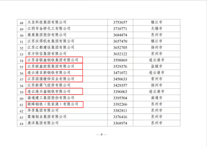 沙鋼、中天鋼鐵、永卓控股等多家鋼鐵企業(yè)上榜“2024江蘇民營企業(yè)200強(qiáng)”