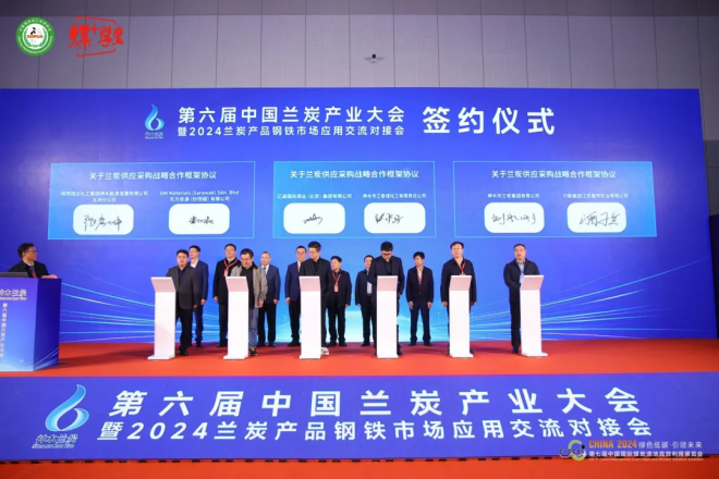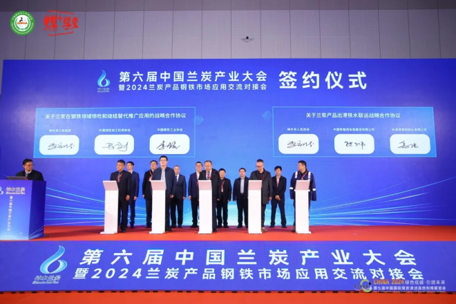 會上,神木市蘭炭產業辦就蘭炭產業情況及市場應用進行推介,共簽約《蘭炭供應采購戰略合作協議》6個,《蘭炭在鋼鐵領域噴吹和燒結替代推廣應用協議》1個,《蘭炭產品出港鐵水聯運戰略合作協議》1個,購銷蘭炭產品600萬噸,約60億元。