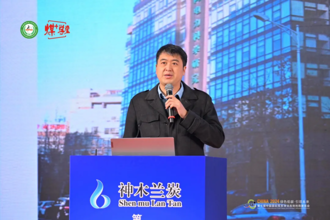 中國國際工程咨詢公司能源業務部煤炭清潔高效利用處處長劉光啟為與會代表做題為《煤炭清潔高效利用“十五五”及蘭炭(提質煤)產業發展》的報告。