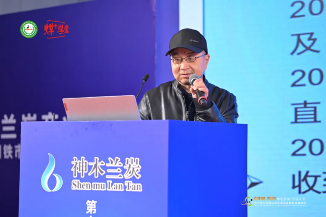 神木市蘭炭產業發展領導小組辦公室黨支部書記劉朝輝為與會代表做題為《神木市蘭炭產業及市場應用推介》的報告。