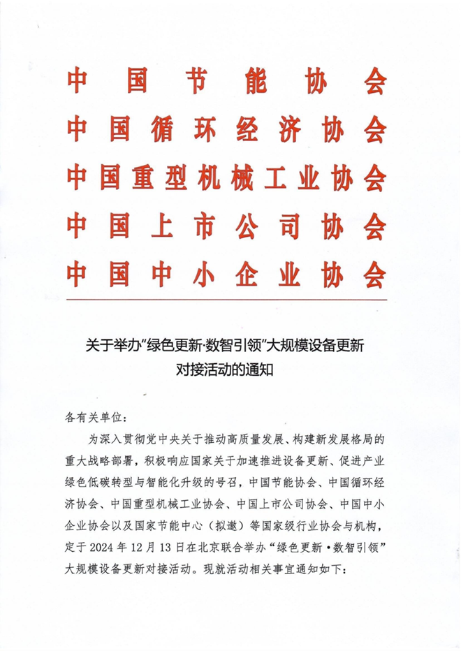 關(guān)于舉辦“綠色更新?數(shù)智引領(lǐng)”大規(guī)模設(shè)備更新對接活動的通知