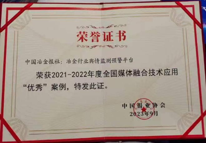 近日,《中國(guó)新聞出版深度融合發(fā)展年鑒》(2021—2024年卷)正式面向海內(nèi)外公開(kāi)發(fā)行,《冶金行業(yè)輿情監(jiān)測(cè)預(yù)警平臺(tái)項(xiàng)目》入編該書(shū)創(chuàng)新案例樣本。
