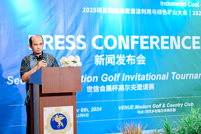 2024年12月6日,2025印尼國際煤炭及能源工業博覽會暨印尼國際煤炭清潔利用與綠色礦山大會新聞發布會在印度尼西亞雅加達現代鄉村高爾夫俱樂部舉行。印尼能源與礦產資源部煤炭司煤炭下游工業處處長Muhammad Ansari,中國國家創新與發展戰略研究會副秘書長曹煒,世信會展集團股份有限公司董事長曹林炳,印尼礦業服務協會公關關系部主任Ardhi Ishak,印中商務理事會常務副理事長許再山,出席新聞發布會并致辭,世信國際會展(印尼)有限公司董事長黃榮發布展會相關情況。新聞發布會由世信國際會展(印尼)有限公司高級合伙人戴世忠主持。