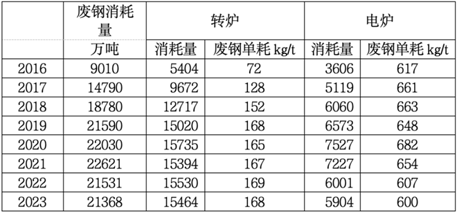 2016年?2023年鋼鐵行業(yè)廢鋼總消耗、轉(zhuǎn)爐消耗、電爐消耗
