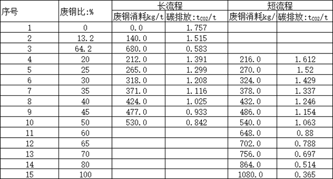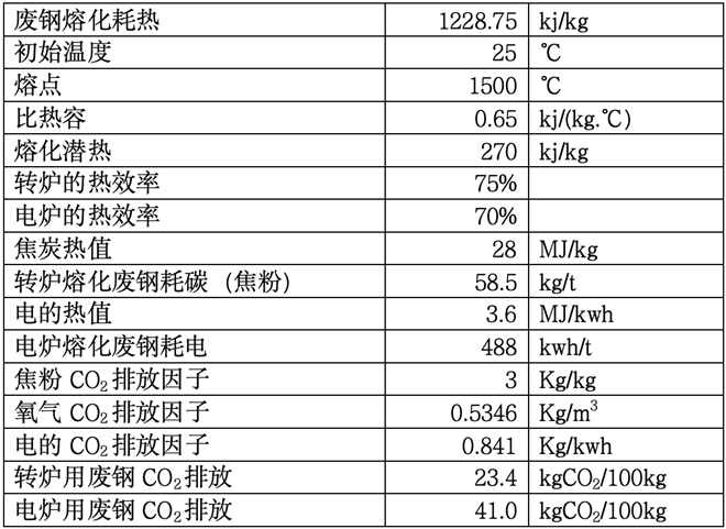 現(xiàn)在廢鋼供應(yīng)量不足,轉(zhuǎn)爐與電爐爭奪廢鋼,從經(jīng)濟性和供應(yīng)量上不能支撐電爐全廢鋼冶煉,電爐的產(chǎn)能利用率也比較低。以下計算廢鋼應(yīng)用到轉(zhuǎn)爐和電爐中的降碳效果。