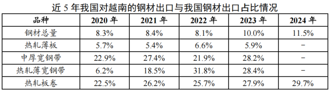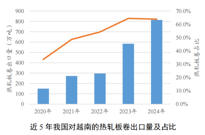 2024年我國出口到越南的鋼材1273.8萬噸,越南是我國鋼鐵第一大出口目的地。