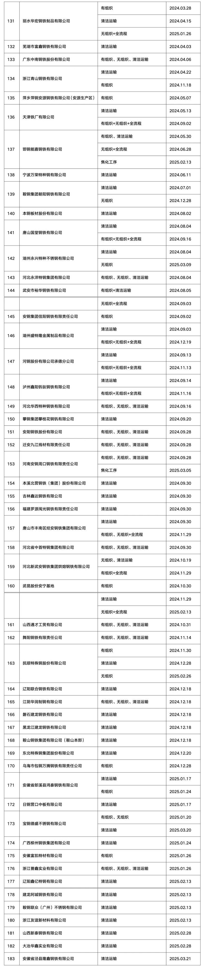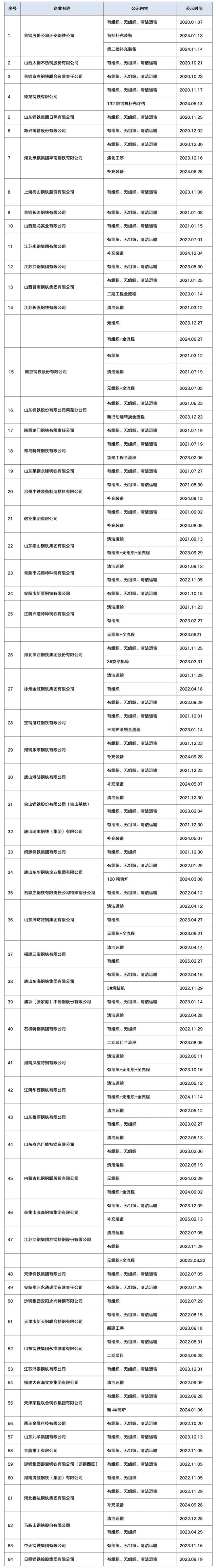 自2020年8月起,中國鋼鐵工業(yè)協(xié)會(huì)開展了鋼鐵企業(yè)超低排放改造和評(píng)估監(jiān)測進(jìn)展情況公示工作。截至目前,已有183家企業(yè)在鋼協(xié)網(wǎng)站進(jìn)行公示。已公示企業(yè)名單匯總及各企業(yè)公示內(nèi)容整理如下: