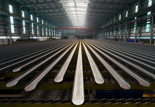 圖為唐山市海港經(jīng)濟(jì)開(kāi)發(fā)區(qū)一家鋼鐵企業(yè)剛軋制出爐的槽型鋼