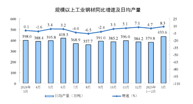 4月16日,國(guó)家統(tǒng)計(jì)局公布的數(shù)據(jù)顯示,1-3月份,我國(guó)生鐵產(chǎn)量21628萬(wàn)噸,同比增長(zhǎng)0.8%;我國(guó)粗鋼產(chǎn)量25933萬(wàn)噸,同比增長(zhǎng)0.6%;我國(guó)鋼材產(chǎn)量35874萬(wàn)噸,同比增長(zhǎng)6.1%。