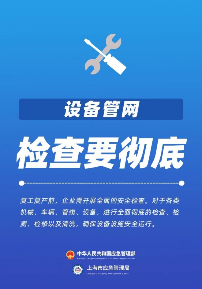 ◆ 要對各類機械、車輛、管線、設備等進行全面徹底的檢查、檢測、檢修以及清洗,確保設備設施安全運行;