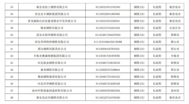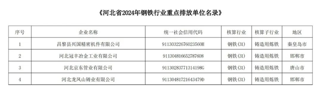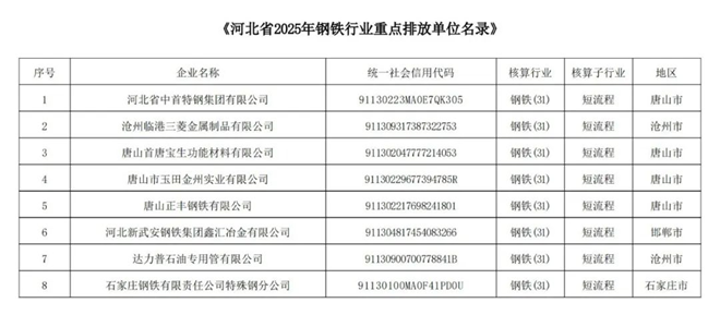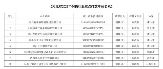 河北省2024、2025年度納入全國碳排放權交易市場鋼鐵行業重點排放單位名錄
