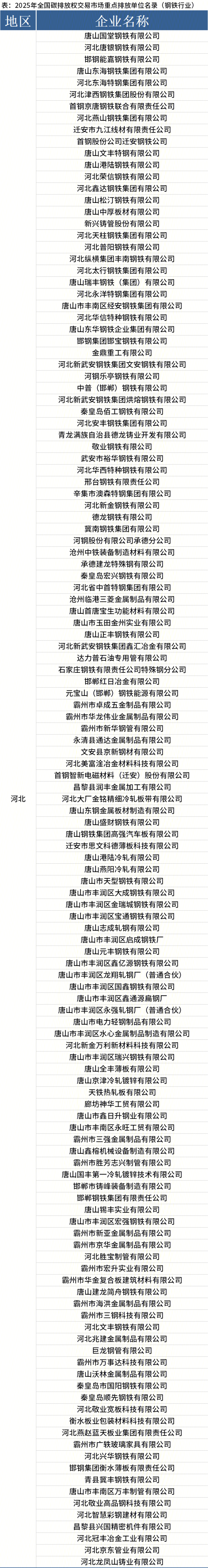 22省市公布2025年碳排放權交易市場鋼鐵行業重點排放單位名錄