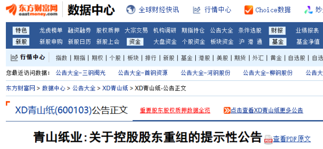 同日,福建省輕紡(控股)有限責任公司旗下上市公司青山紙業也發布公告,披露其控股股東福建輕紡股權將全部注入福建省工控集團。