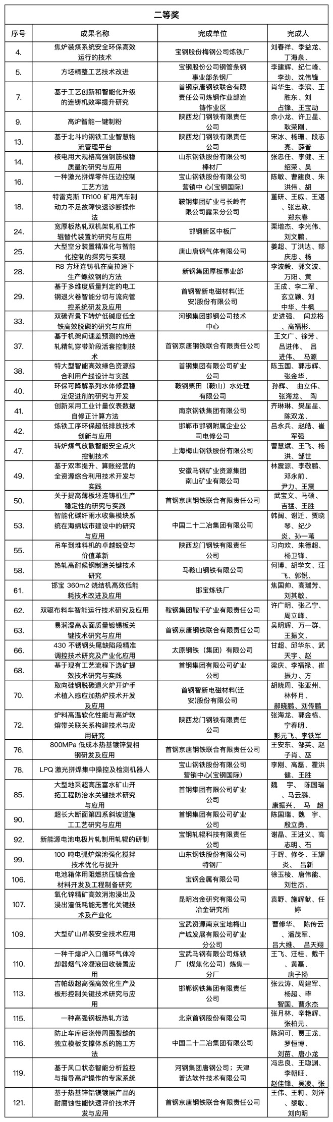 名單分為優(yōu)秀組織單位名單與獲獎名單兩部分,其中鋼鐵及相關(guān)企業(yè)整理如下——