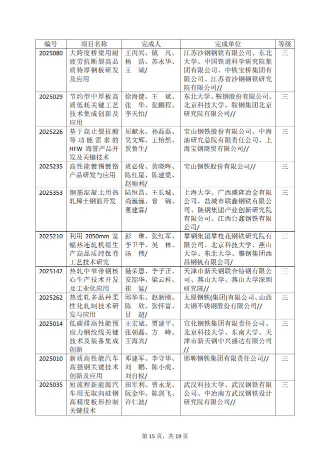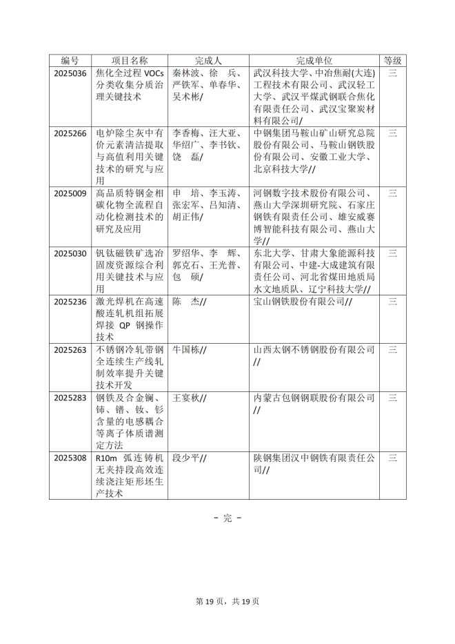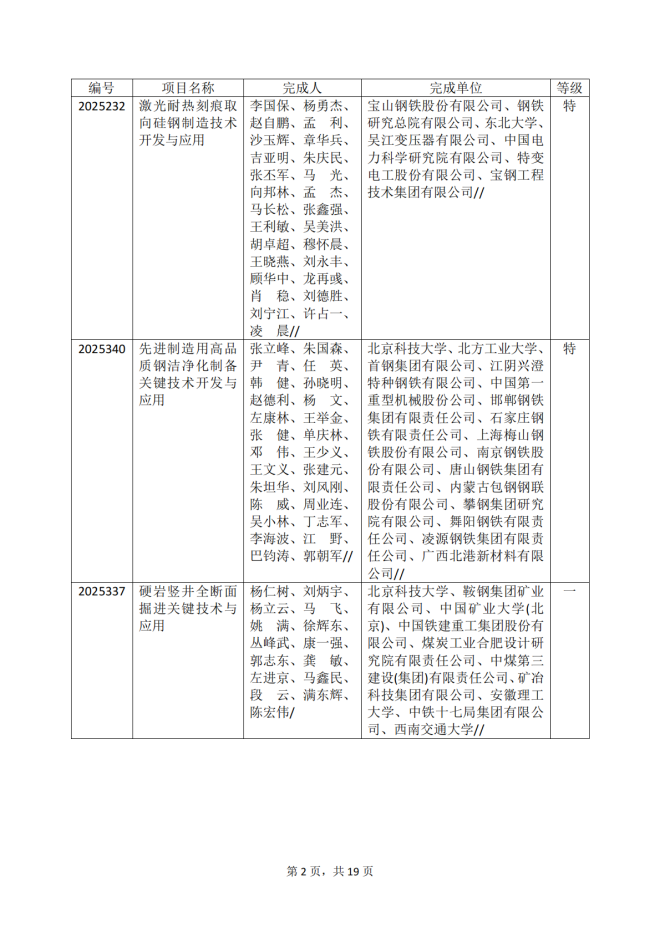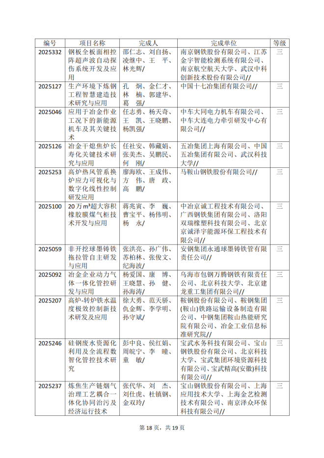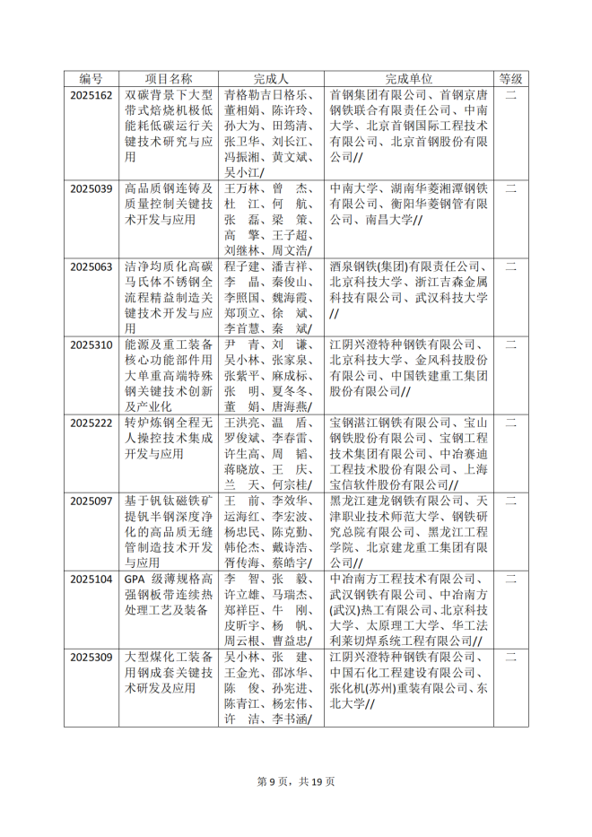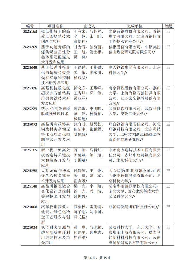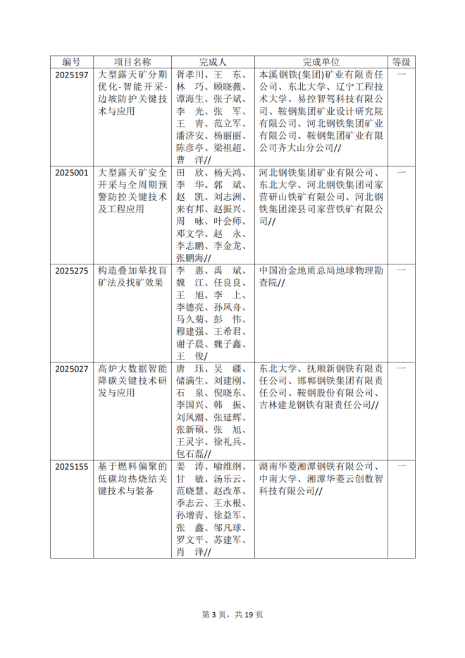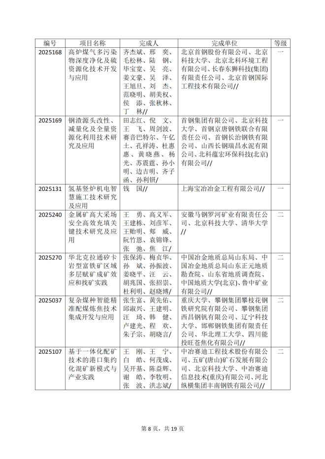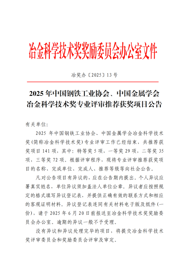 2025年冶金科學技術(shù)獎專業(yè)評審推薦獲獎項目公告