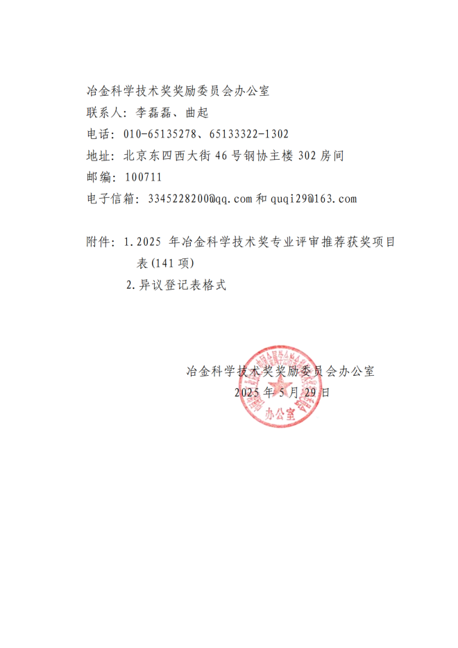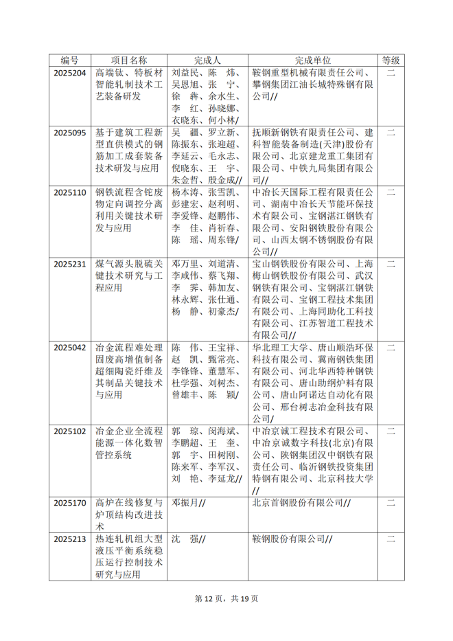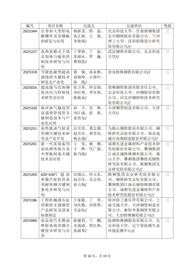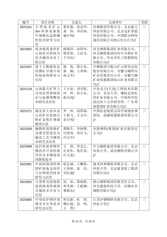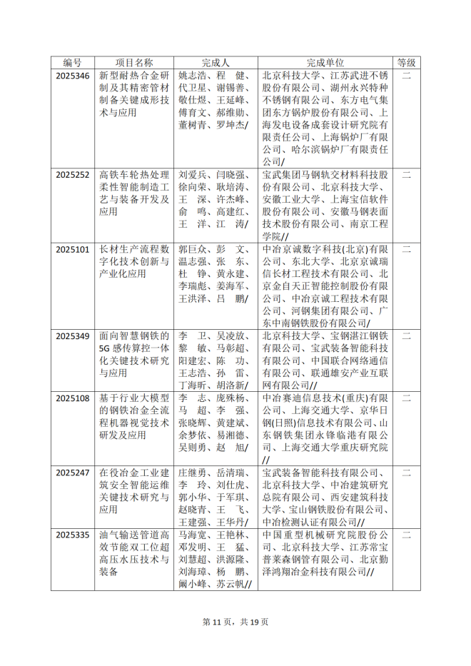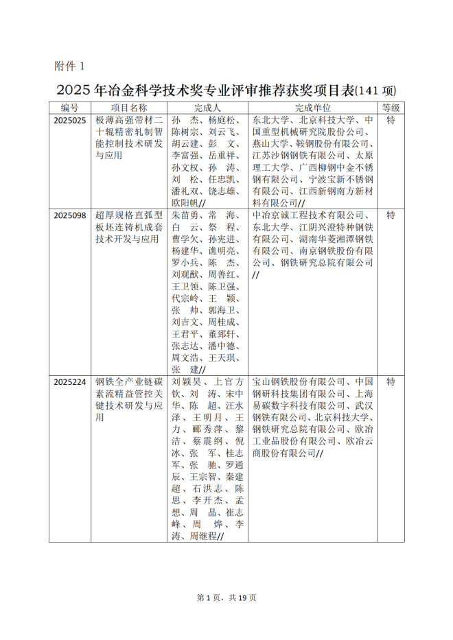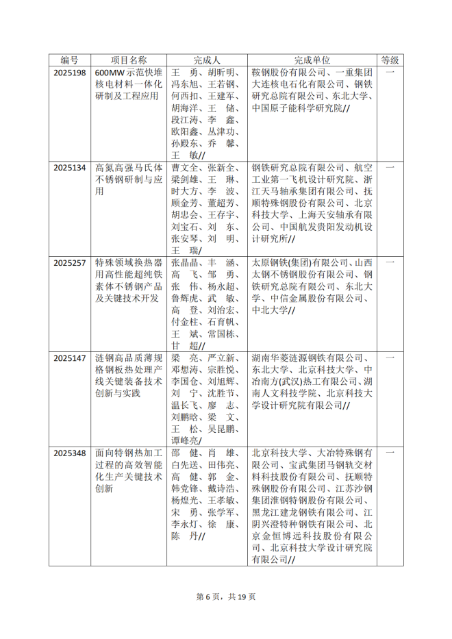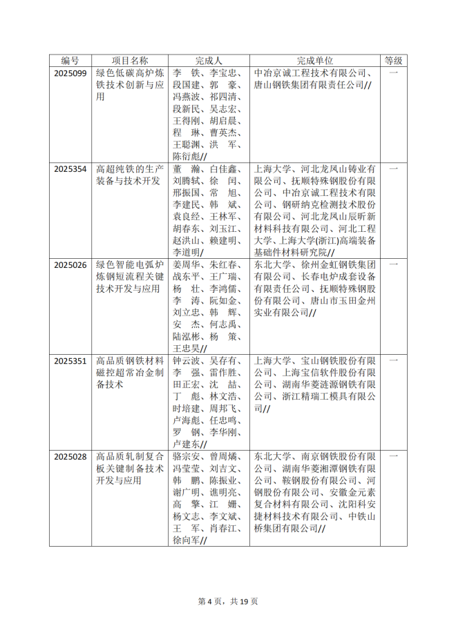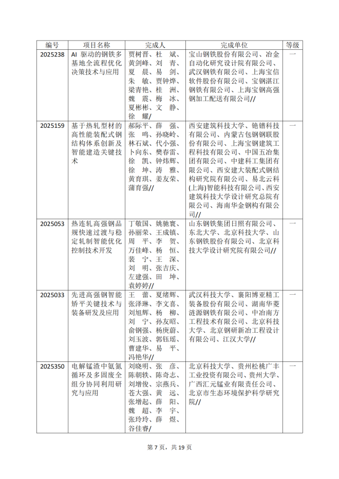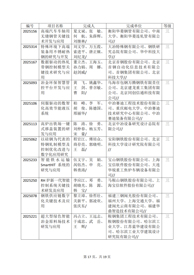 2025年冶金科學技術(shù)獎專業(yè)評審推薦獲獎項目公告