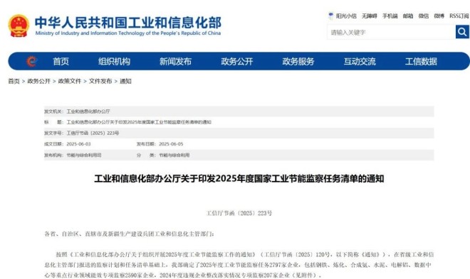 工業和信息化部近日印發2025年度國家工業節能監察任務清單,確定2025年度工業節能監察任務2797家企業,包括鋼鐵、煉化、合成氨、水泥、電解鋁、數據中心等重點行業領域能效專項監察2590家企業,2024年度違規企業整改落實情況專項監察207家企業。