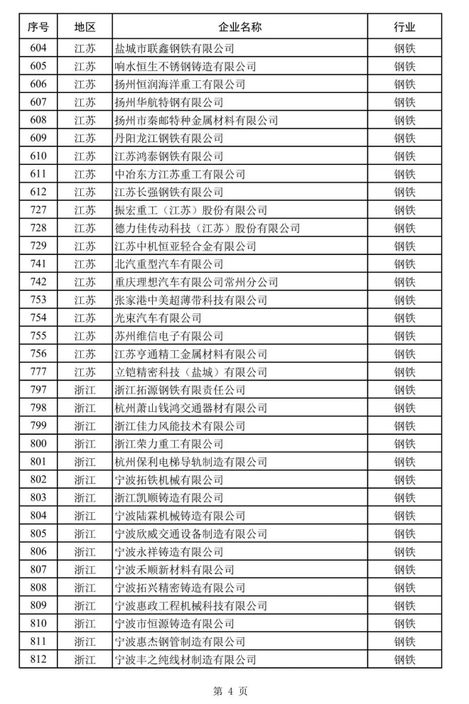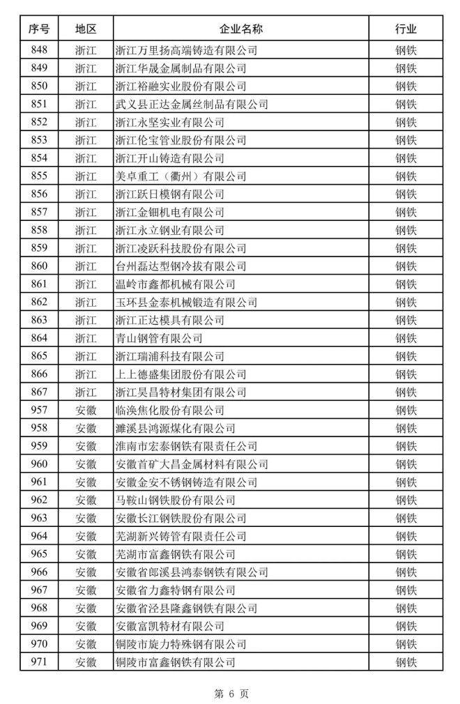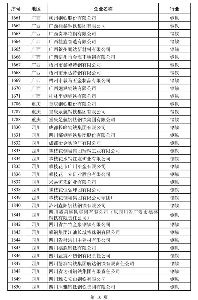 其中,鋼鐵企業名單如下: