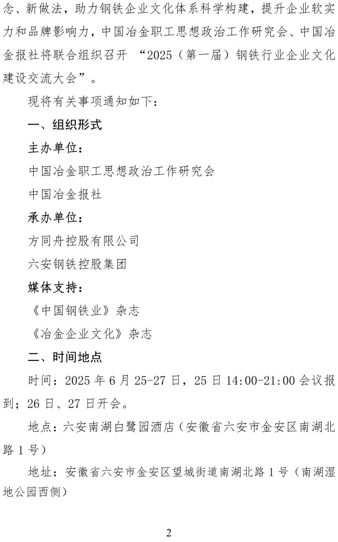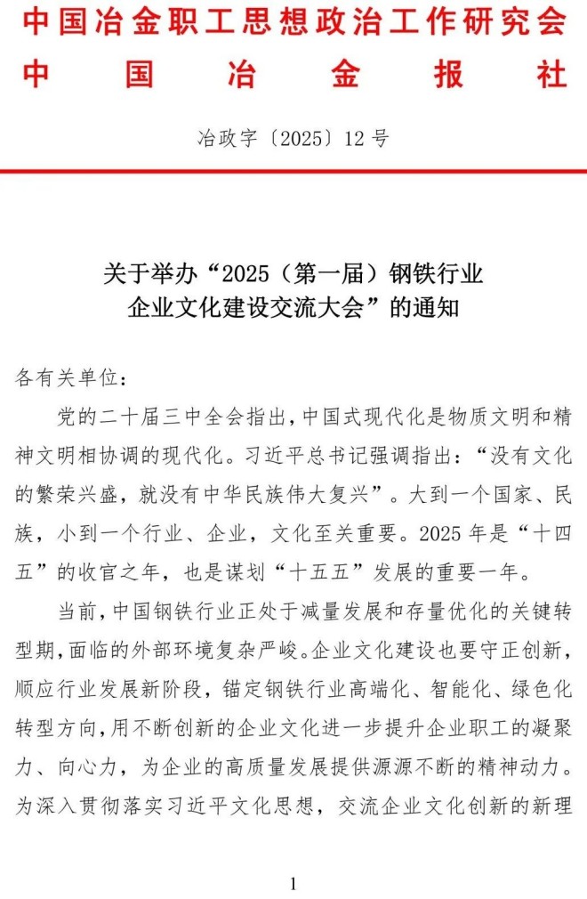 關于舉辦“2025(第一屆)鋼鐵行業企業文化建設交流大會”的通知