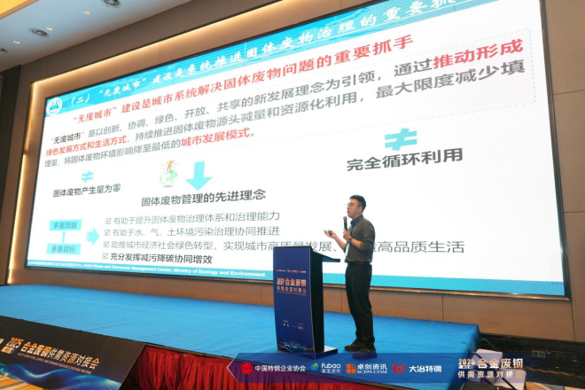 生態(tài)環(huán)境部危廢管理中心專家楊強(qiáng)威系統(tǒng)闡釋了“無廢集團(tuán)”建設(shè)的政策框架與實(shí)施路徑,并結(jié)合典型案例分享減廢降碳的實(shí)踐經(jīng)驗(yàn),為企業(yè)推進(jìn)綠色轉(zhuǎn)型提供了極具價(jià)值的指導(dǎo)。他提出,對(duì)固廢產(chǎn)生量大、種類復(fù)雜且環(huán)境風(fēng)險(xiǎn)可控的大型國企,給予 “白名單”“點(diǎn)對(duì)點(diǎn)” 等政策優(yōu)惠,支持其開展 “無廢集團(tuán)” 建設(shè),降低成本、提高效益;借助大企業(yè)優(yōu)勢加強(qiáng)省際及城市間聯(lián)系,互鑒經(jīng)驗(yàn),補(bǔ)充 “無廢城市” 建設(shè);組織行業(yè)龍頭制定固廢資源化利用行業(yè)標(biāo)準(zhǔn),規(guī)范市場運(yùn)行,推動(dòng)良性競爭,引領(lǐng)高質(zhì)量發(fā)展。