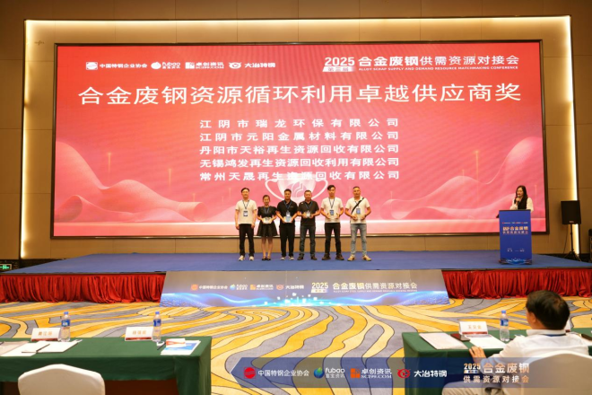 會(huì)議期間,中國特鋼企業(yè)協(xié)會(huì)特別頒發(fā)“合金廢鋼資源循環(huán)利用卓越供應(yīng)商獎(jiǎng)”,對(duì)在資源高效利用、技術(shù)創(chuàng)新等方面表現(xiàn)優(yōu)異的企業(yè)予以表彰,激勵(lì)全行業(yè)對(duì)標(biāo)先進(jìn)、共同提升。