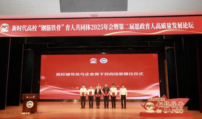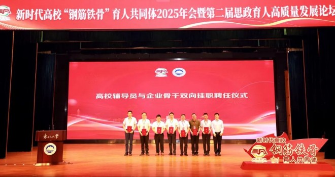 為密切高校與企業之間的合作,更好地發揮校企組織協同育人作用,會上舉行了高校輔導員與企業骨干雙向掛職聘任儀式。大會伊始,與會嘉賓共同觀看了《新時代高校“鋼筋鐵骨”育人共同體2024年工作回顧》專題片。