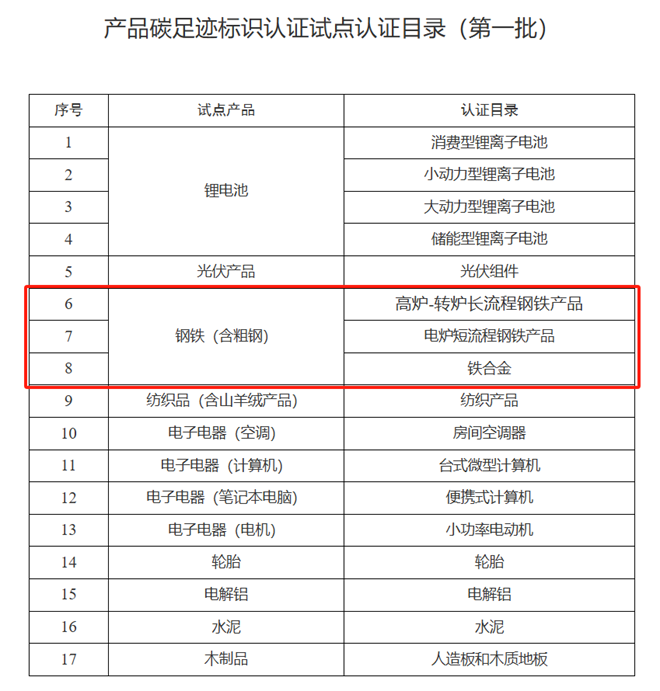近日,市場監(jiān)管總局、生態(tài)環(huán)境部、工業(yè)和信息化部辦公廳聯(lián)合印發(fā)通知,明確了全國首批產(chǎn)品碳足跡標(biāo)識(shí)認(rèn)證試點(diǎn)認(rèn)證目錄,包括鋰離子電池、光伏組件、鋼鐵產(chǎn)品、紡織產(chǎn)品、房間空調(diào)器、計(jì)算機(jī)、小功率電機(jī)、輪胎、電解鋁、水泥、人造板和木質(zhì)地板等17種產(chǎn)品。