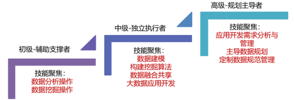 《評(píng)價(jià)規(guī)范》將礦山大數(shù)據(jù)工程技術(shù)人員職業(yè)分為初、中、高三個(gè)級(jí)別。初級(jí)定位是輔助支撐者,在有明確的操作步驟的前提下完成操作任務(wù);中級(jí)定位是獨(dú)立執(zhí)行者,能獨(dú)立完成較復(fù)雜的工作任務(wù),并參與規(guī)劃工作;高級(jí)定位是規(guī)劃主導(dǎo)者,主導(dǎo)開(kāi)展工作,并指導(dǎo)初、中級(jí)從制度到實(shí)施、從規(guī)劃到優(yōu)化等實(shí)施工作。
