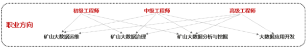 《評(píng)價(jià)規(guī)范》共劃分了4個(gè)職業(yè)方向,初級(jí)對(duì)應(yīng)3個(gè)方向,中高級(jí)對(duì)應(yīng)4個(gè)方向。其中,礦山大數(shù)據(jù)運(yùn)維方向的職業(yè)功能(技能項(xiàng))包括大數(shù)據(jù)平臺(tái)管理與運(yùn)維和大數(shù)據(jù)運(yùn)營(yíng)管理,礦山大數(shù)據(jù)治理方向的職業(yè)功能包括數(shù)據(jù)治理和大數(shù)據(jù)運(yùn)營(yíng)管理,礦山大數(shù)據(jù)分析與挖掘方向的職業(yè)功能包括大數(shù)據(jù)分析與挖掘和大數(shù)據(jù)運(yùn)營(yíng)管理,大數(shù)據(jù)應(yīng)用開(kāi)發(fā)方向的職業(yè)功能包括大數(shù)據(jù)應(yīng)用開(kāi)發(fā)和大數(shù)據(jù)運(yùn)營(yíng)管理。