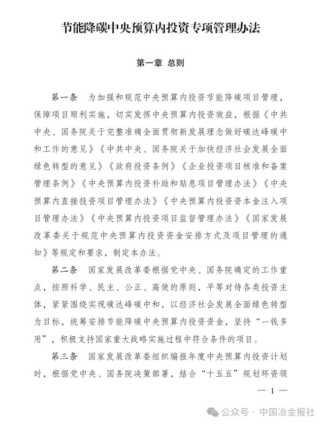 10月14日,國家發展改革委網站發布了關于印發《節能降碳中央預算內投資專項管理辦法》的通知(以下簡稱《通知》)。