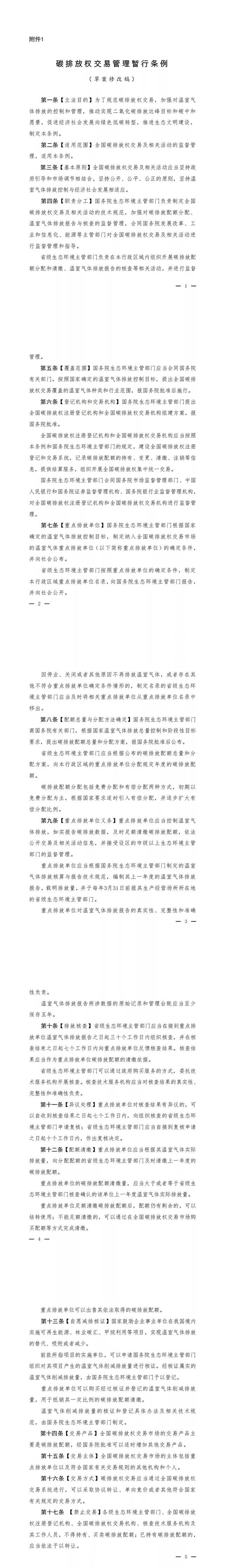 3月30日,生態環境部發布關于公開征求《碳排放權交易管理暫行條例(修改意見稿)》(以下簡稱“《修改意見稿》”)的通知,提出建設全國碳排放權注冊登記和交易系統,記錄碳排放配額的持有、變更、清繳、注銷等信息,提供結算服務,組織開展全國碳排放權集中統一交易。被納入全國碳排放權交易市場的重點排放單位,不再參與地方碳排放權交易試點市場。