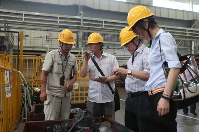 圖為中信泰富特鋼興澄特鋼技術(shù)人員深入用戶生產(chǎn)現(xiàn)場進行調(diào)研。(特約通訊員 陸衛(wèi)宇 攝)