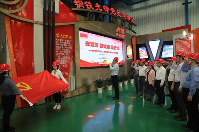 在柳鋼集團“鋼鐵先鋒黨員淬煉線”,黨員領導干部現場快閃演唱《沒有共產黨就沒有新中國》、重溫入黨誓詞、實地參觀學習,感受柳鋼集團將黨建文化融入生產現場,將黨員精神貫穿生產全程,將帶動效應植入職工內心的氛圍。