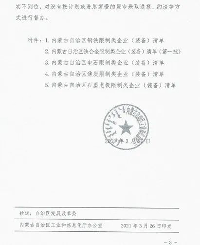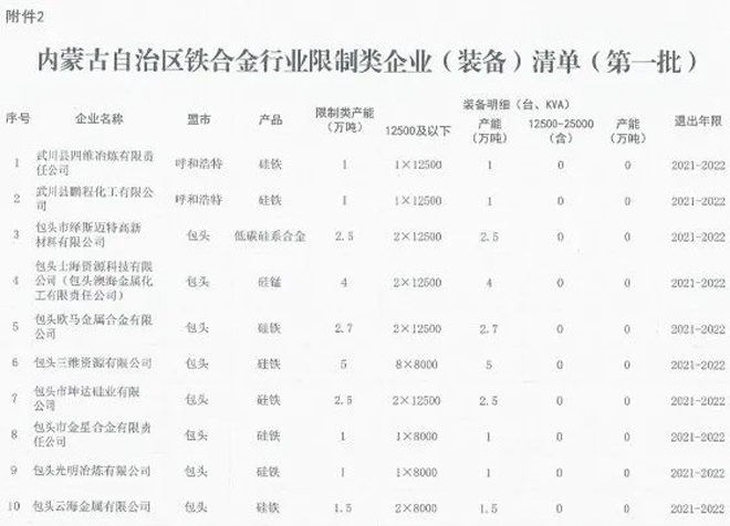 日前,內蒙古自治區工業和信息化廳印發《關于印發淘汰落后化解過剩產能計劃的通知》(以下簡稱《通知》),《通知》要求各盟市抓緊制定鐵合金、鋼鐵行業退出方案,明確2021~2023每一年度具體計劃,并要求整合退出的80%以上任務要安排在2021~2022年,整合工作要盡早開展,為產能退出創造條件。