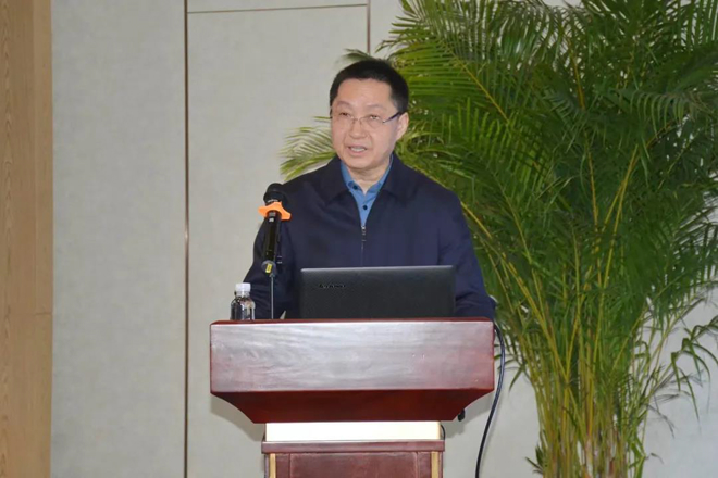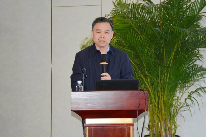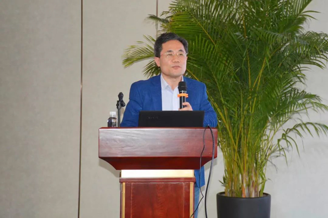 圖為中國鋼鐵工業協會副會長,冶金工業規劃研究院黨委書記李新創在作題為《鋼鐵行業低碳發展的相關工作設想及建議》的報告