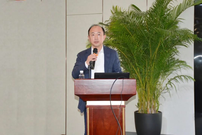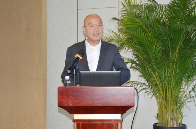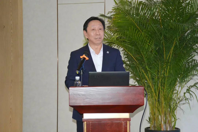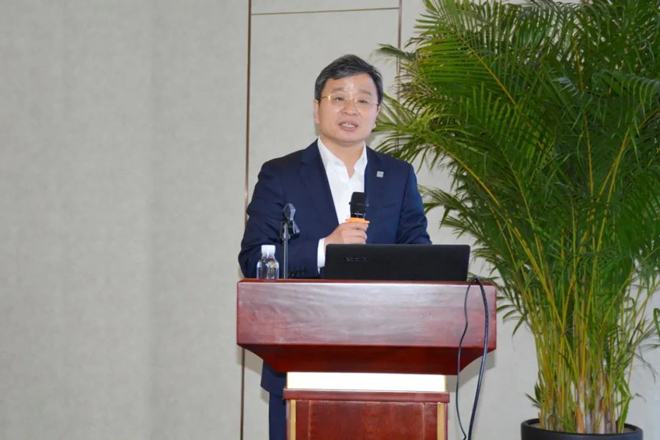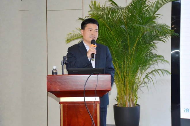 圖為河鋼集團副總經理李毅仁作題為《碳中和愿景下的河鋼低碳綠色發展路徑》的報告