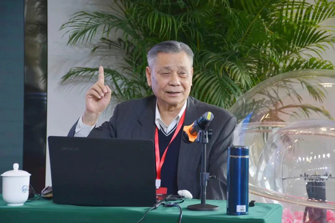 圖為中國工程院院士、鋼鐵研究總院名譽院長、原冶金部副部長殷瑞鈺作題為《關于鋼鐵工業碳達峰、碳中和的認識》的報告