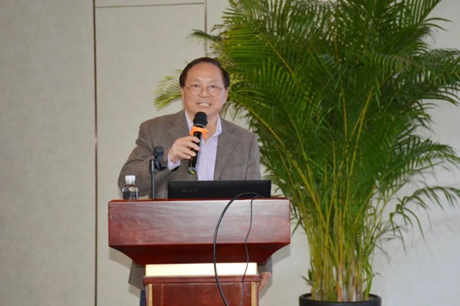 圖為中國工程院院士、北京科技大學終身教授毛新平作題為《機遇與挑戰:碳中和背景下的中國鋼鐵工業》的報告